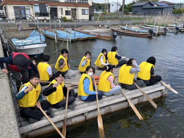 午前中はラムサール条約登録の涸沼エリアにて、いかだ体験、漁業講話、水質検査、ヤマトしじみ試飲、バードウォッチングなどここならではの体験をしました。