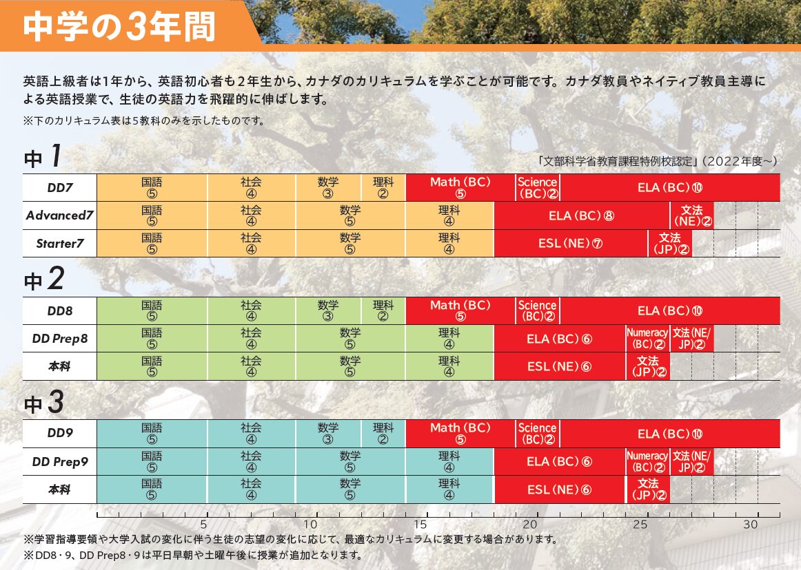 カナダ・ブリティッシュコロンビア州(以下BC州)の「海外校」にして、日本とカナダ両国の高校卒業資格を取得できる「ダブルディプロマコース」の準備コースを中学校に新設。このコースは2年進級時に選択できます。BC州教員による面接と英語力で判断し、参加できる設定となっています。